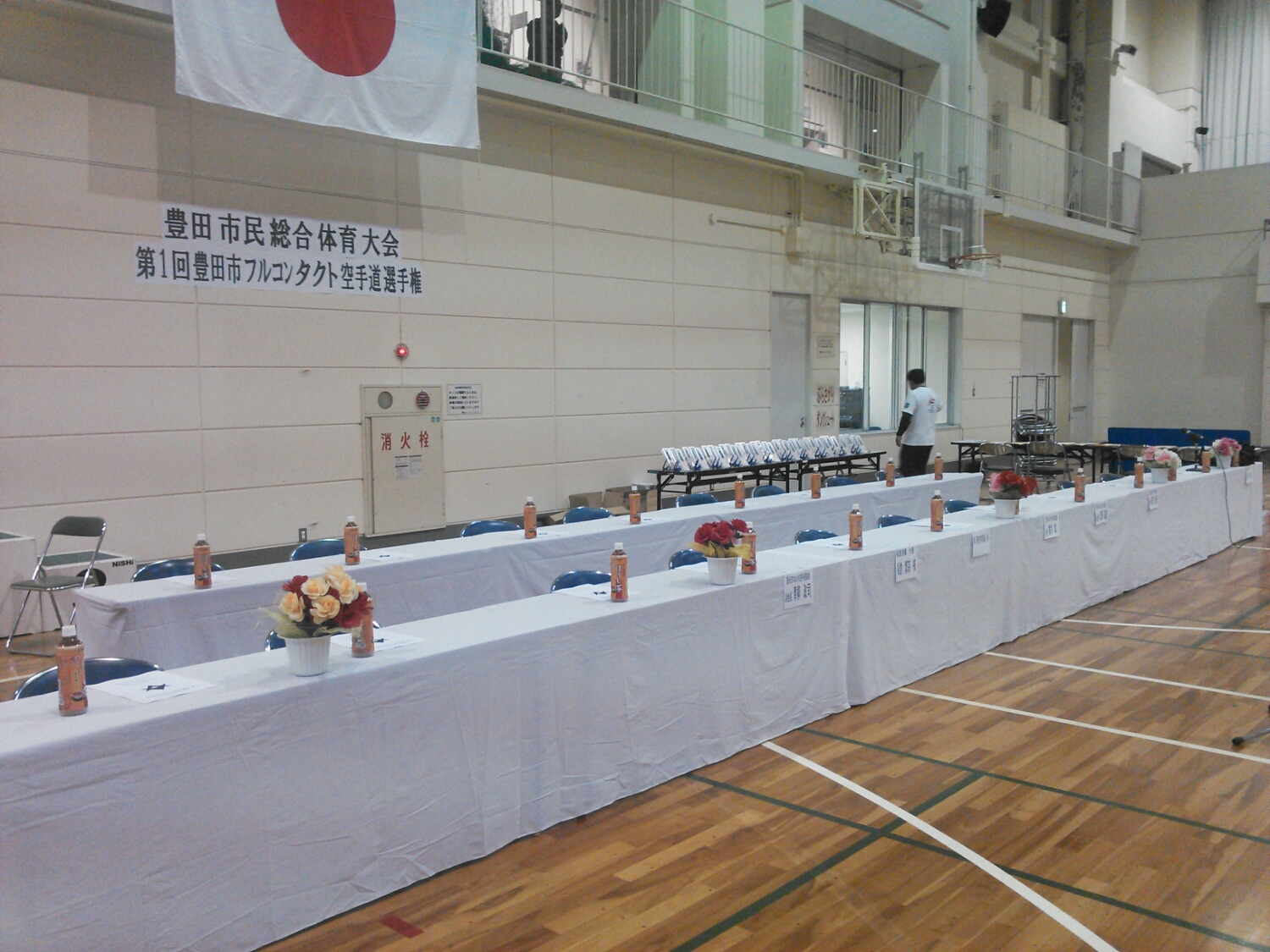 第1回豊田市フルコンタクト空手道協会主催大会の前日準備のようす