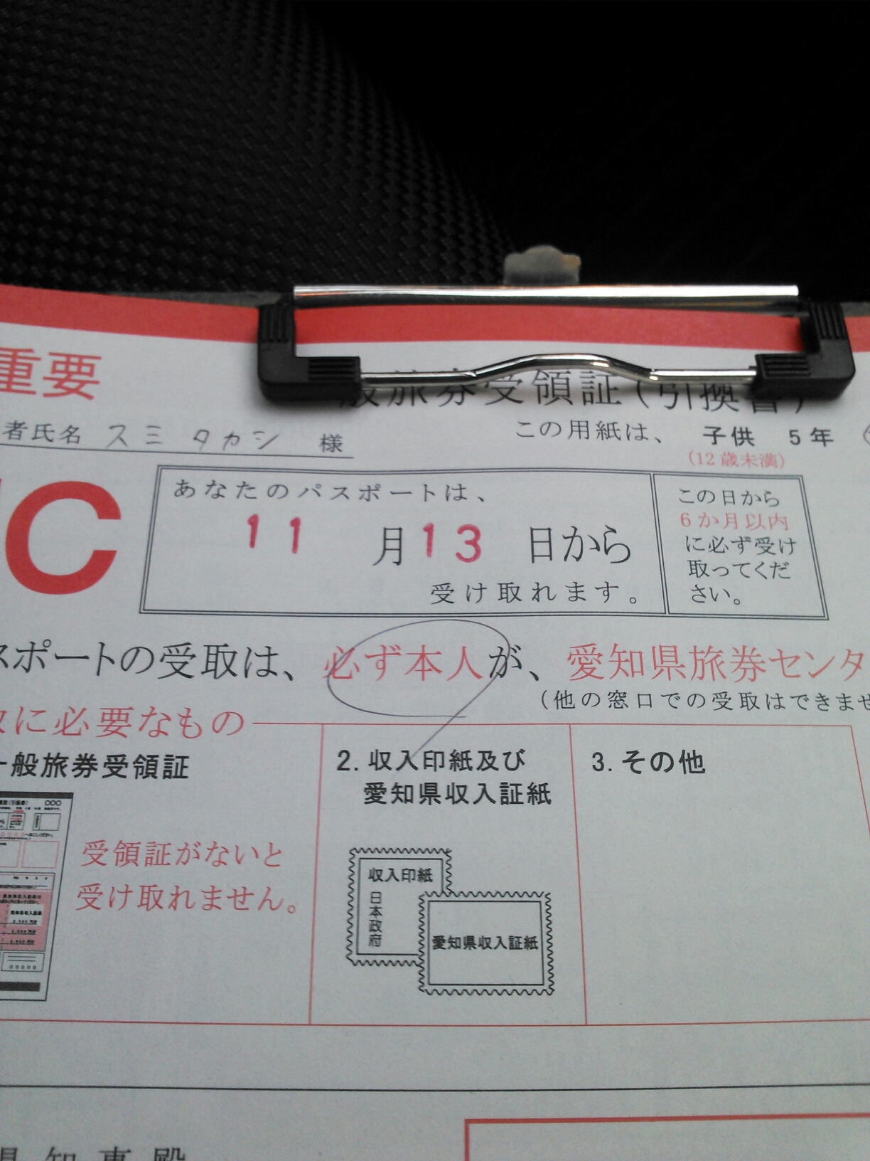 そしてパスポートは来週の木曜日から受け取れるよー