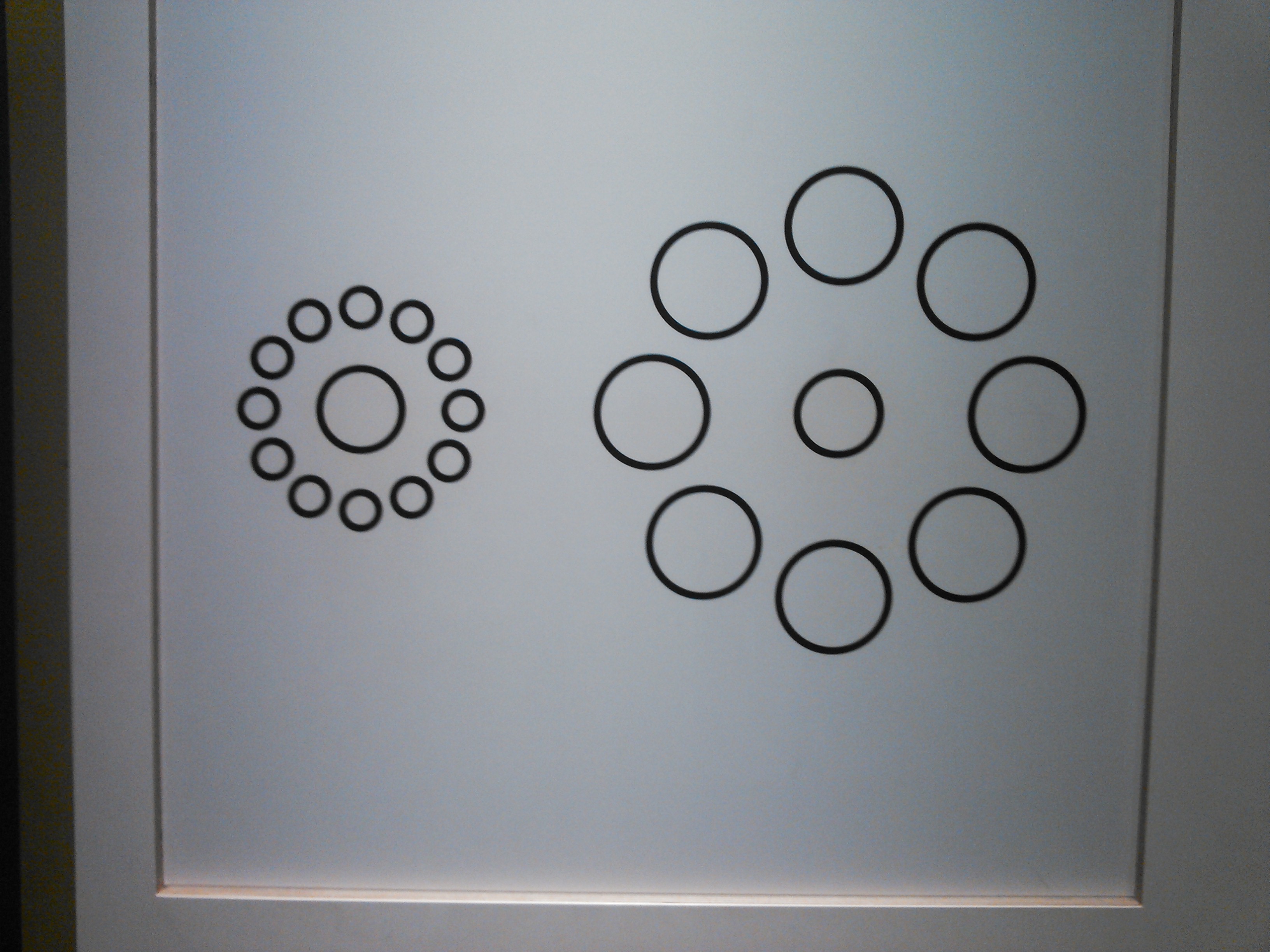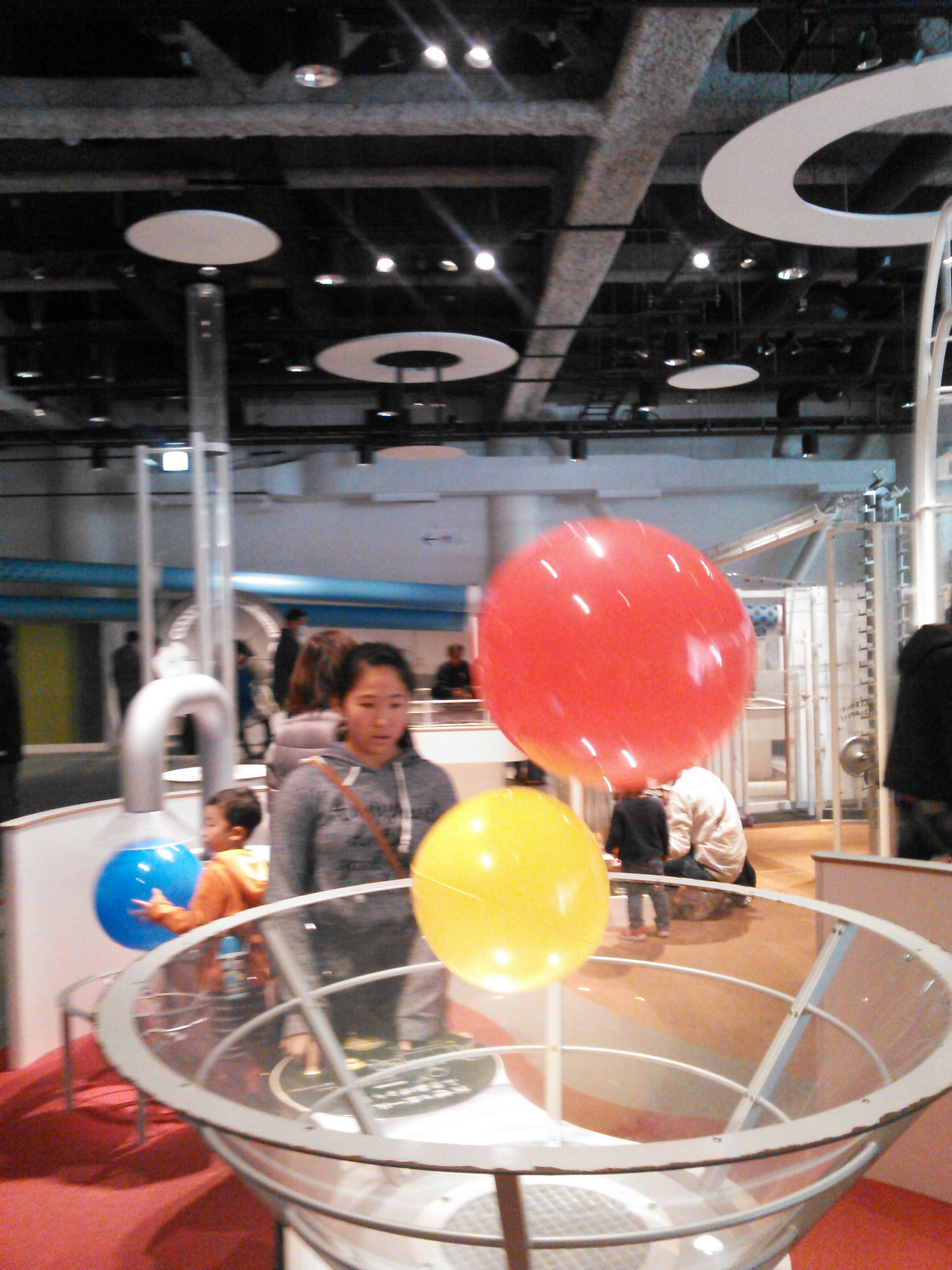 左の写真は下から風が吹き出して2つのボールが外に飛び出さずに浮いている様子で