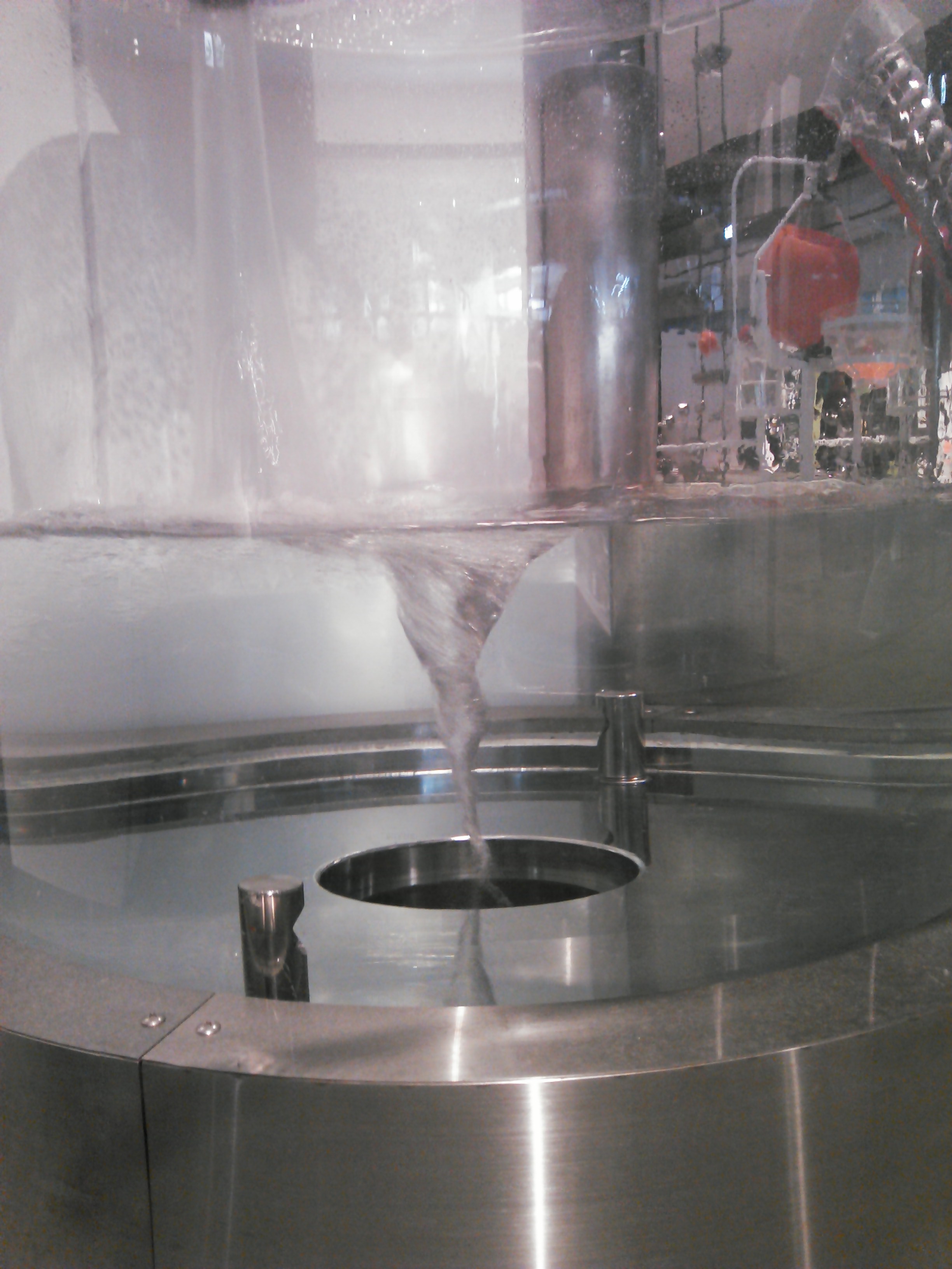 右の写真は中心から水を抜いたらできる渦巻きの様子です
